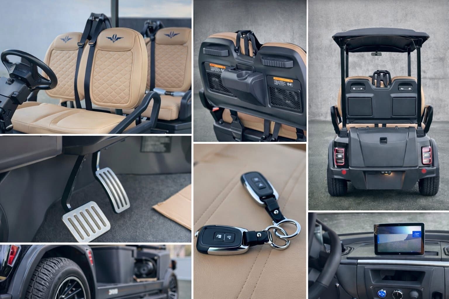 Kies voor luxe, klasse en stijl met onze Avalin golfkarren. Personaliseer uw kar tot in de puntjes: geborduurde zetels met uw eigen logo, keuze uit diverse kleuren voor zetels en carrosserie, en moderne snufjes zoals een tablet, Apple CarPlay en radio. Een golfkar die écht bij u past.